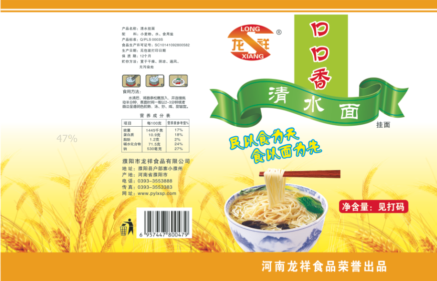 濮陽市龍祥食品有限公司位于河南省濮陽縣戶部寨鎮(zhèn)小濮州,始建于1994年,前期投資200萬元,經(jīng)過幾年的努力,大力開發(fā)市場(chǎng),由于市場(chǎng)的需求量急劇上升,出現(xiàn)供不應(yīng)求,于2004年擴(kuò)建,建成一座新型的現(xiàn)代化面粉加工企業(yè),并擁有全國先進(jìn)全自動(dòng)生產(chǎn)設(shè)備一套,產(chǎn)量由以前的100噸/天,提高到現(xiàn)在400噸/天。 2012年再次擴(kuò)大規(guī)模申請(qǐng)為濮陽市龍祥食品有限公司,注冊(cè)資金500萬元。2012年又投資800萬元新建掛面生產(chǎn)線一條,日產(chǎn)掛面50噸。龍祥食品有限公司現(xiàn)有職工120余人,總工程師1人,專業(yè)技術(shù)人員10人,經(jīng)濟(jì)師1人,會(huì)計(jì)師1人,銷售人員2人,優(yōu)秀專業(yè)人員20余人?! ↓埾楣咀詣?chuàng)建以來,社會(huì)效益十分可觀。公司一直以“今天的質(zhì)量,明天的市場(chǎng)”為信念,“一切為了客戶需求,竭誠追求完美品質(zhì)”為企業(yè)宗旨,走專業(yè)化經(jīng)營和職業(yè)化管理的路子。